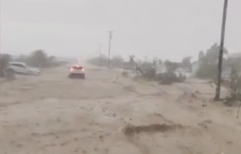 California Hail Storm Leaves Car Struggling To Drive Through Flooded Road